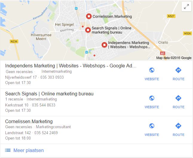 In slechts vier eenvoudige stappen heb je zelf een bedrijfsvermelding geclaimd op Google Maps. Voordeel is ook dat deze vermelding wordt getoond in Google.nl als iemand zoekt op de bedrijfsnaam. Daarnaast heeft dit ook een positieve invloed op de lokale vindbaarheid als iemand naar een dienst zoekt in combinatie met een plaatsnaam of als iemand in je regio op z’n mobiel/tablet een lokale zoekopdracht gebruikt.