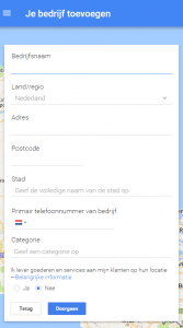 Bedrijf toevoegen aan Google Mijn Bedrijf